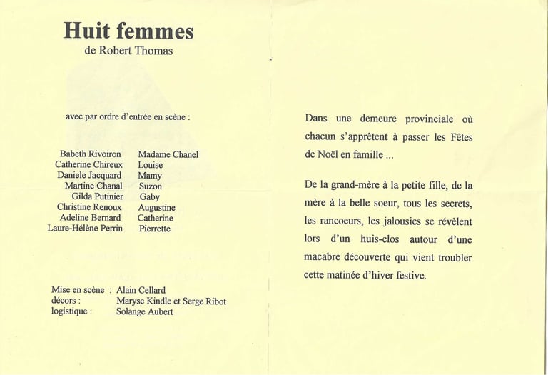 Dans une demeure bourgeoise, le matin de Noël, le père de famille est retrouvé poignardé dans sa chambre. Le meurtre entraîne les huit femmes de la maison dans une intrigue policière haletante, doublée d'une joute qui est autant physique que verbale. Dans ce huis clos , la progression de l’intrigue révèle que chacune de ces femmes aurait eu une raison de tuer Marcel. Mais laquelle est passée à l’acte ? Et pourquoi ?... La recherche de la vérité donne lieu à un grand déballage qui fait apparaître les aspects mesquins, voire pitoyables, de chacune d’elles.