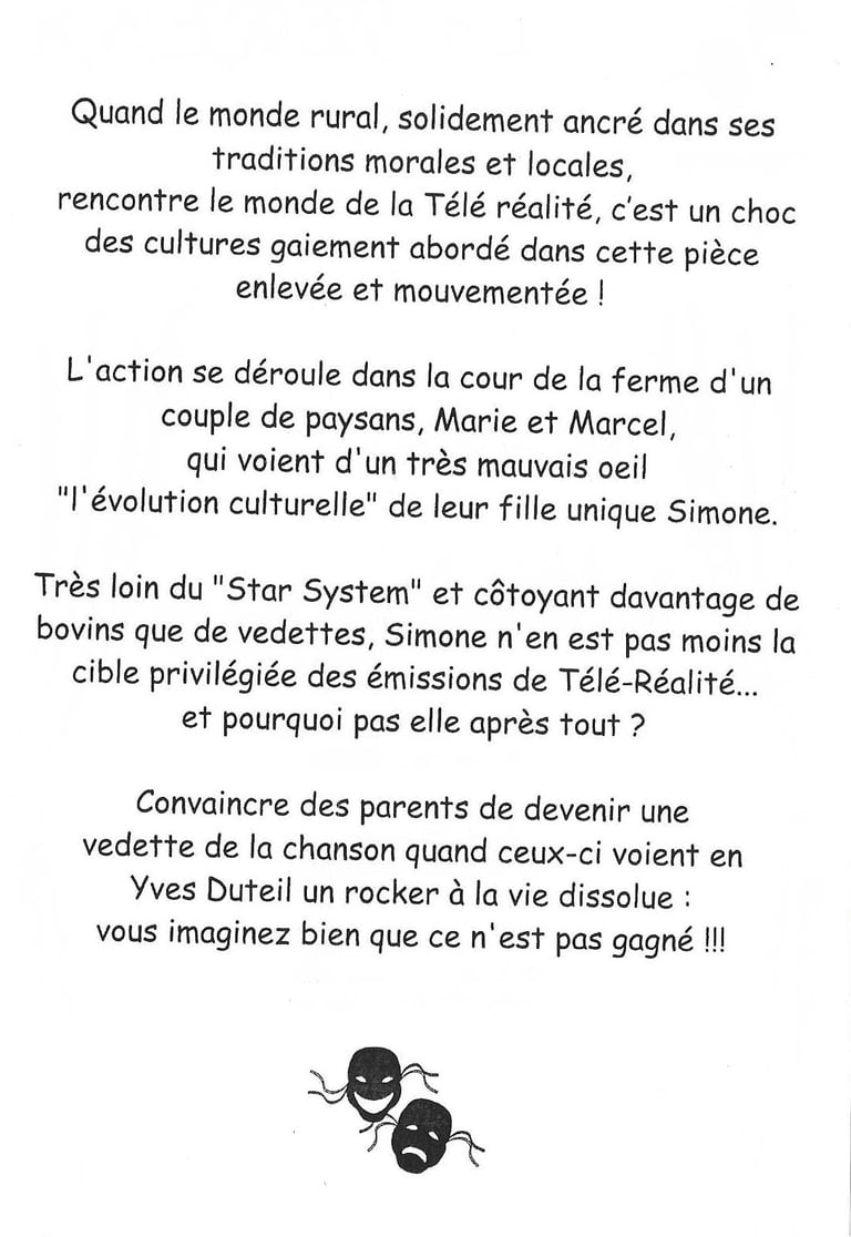 Secret de polichinelle ou pas, l'histoire s'articule autour des tribulations d'une équipe de téléréalité lors du casting d'une chanteuse, fille d'agriculteur. En effet, Simone, fille de Marie et Marcel qui travaillent dur dans leur ferme, ne rêve que de quitter sa campagne profonde pour monter à la capitale embrasser une carrière artistique. En secret, elle a passé avec succès les étapes du casting de la nouvelle émission de télé-réalité « Qui veut devenir la nouvelle Super Pop Idole?». Le maire leur rend visite pour annoncer la bonne nouvelle et les prévenir qu’une équipe de télévision viendra faire un reportage sur leur fille. Mais Marie et Marcel sont décidés à tout faire pour empêcher leur fille de participer à l’émission…