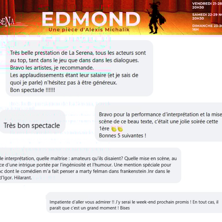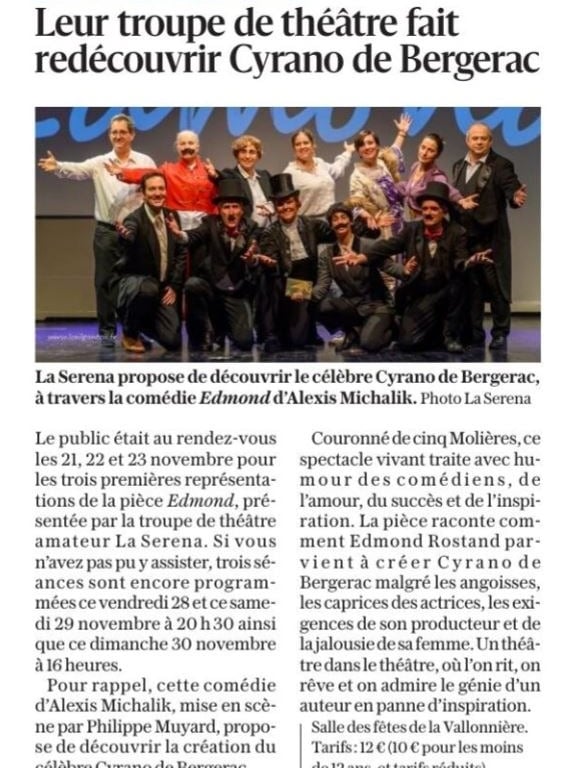 Edmond Rostand n’a pas encore trente ans mais déjà deux enfants et beaucoup d’angoisses. Il n’a rien écrit depuis deux ans. En désespoir de cause, il propose au grand Constant Coquelin une pièce nouvelle, une comédie héroïque, en vers, pour les fêtes. Seul souci : elle n’est pas encore écrite. Faisant fi des difficultés rencontrées, Edmond se met à écrire cette pièce à laquelle personne ne croit.